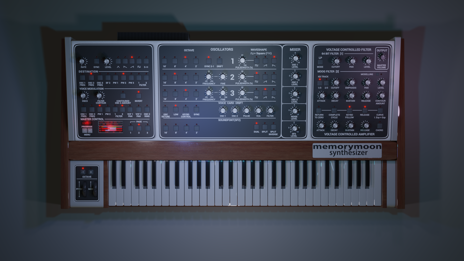 Memorymoon has 6 voicecards with 3 oscillators. Soundfont section has 10 note polyphony.